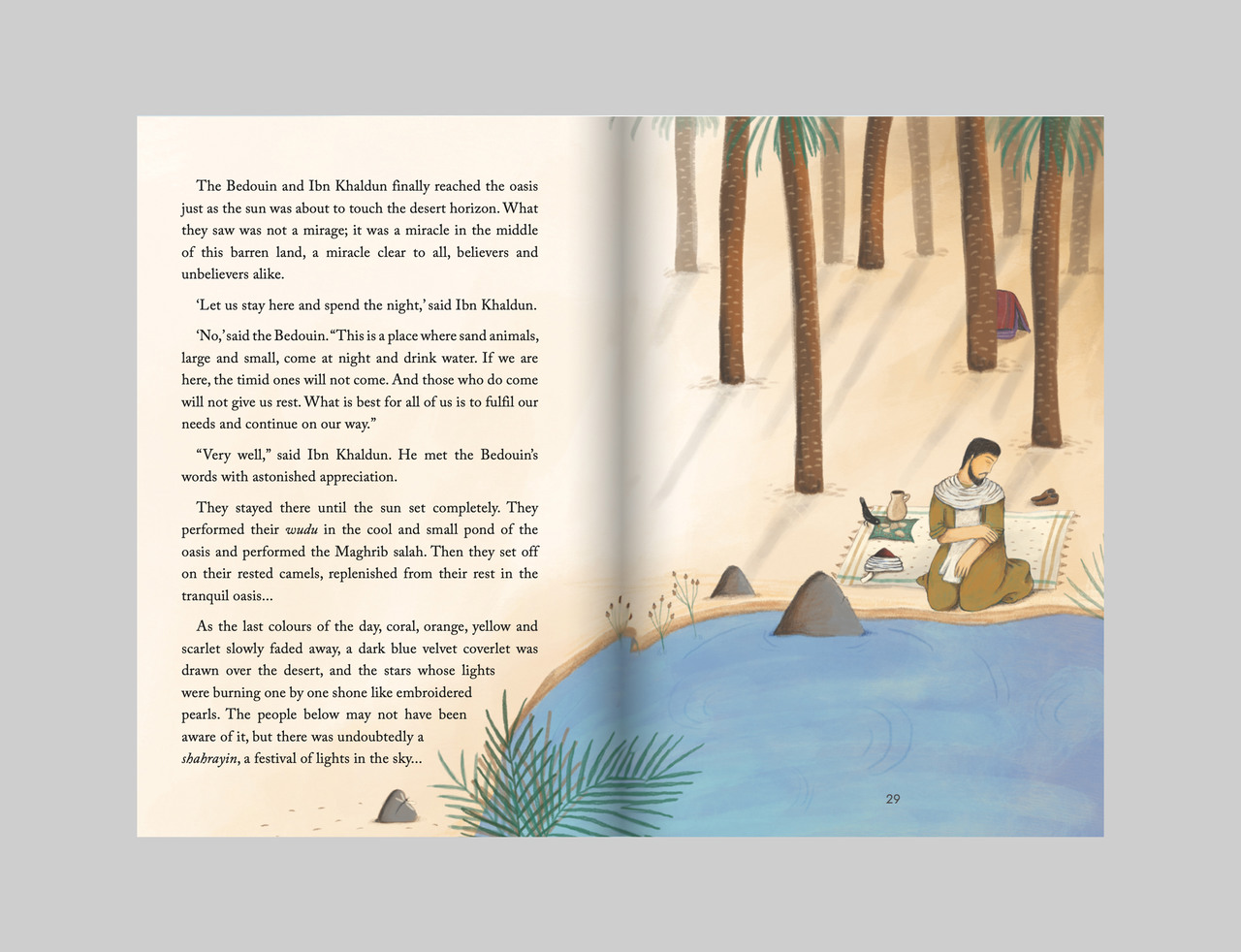 This book tells the fictional story of a quest inspired by Ibn Khaldun’s ideas about people who lived in cities and the bedouins who lived in the deserts and rural areas as nomads. The events in the story have not taken place in reality. Perhaps some of it did happen since Ibn Khaldun did live among the bedouins for a long time, travelled with them, conversed with them in the night, and observed them closely.
