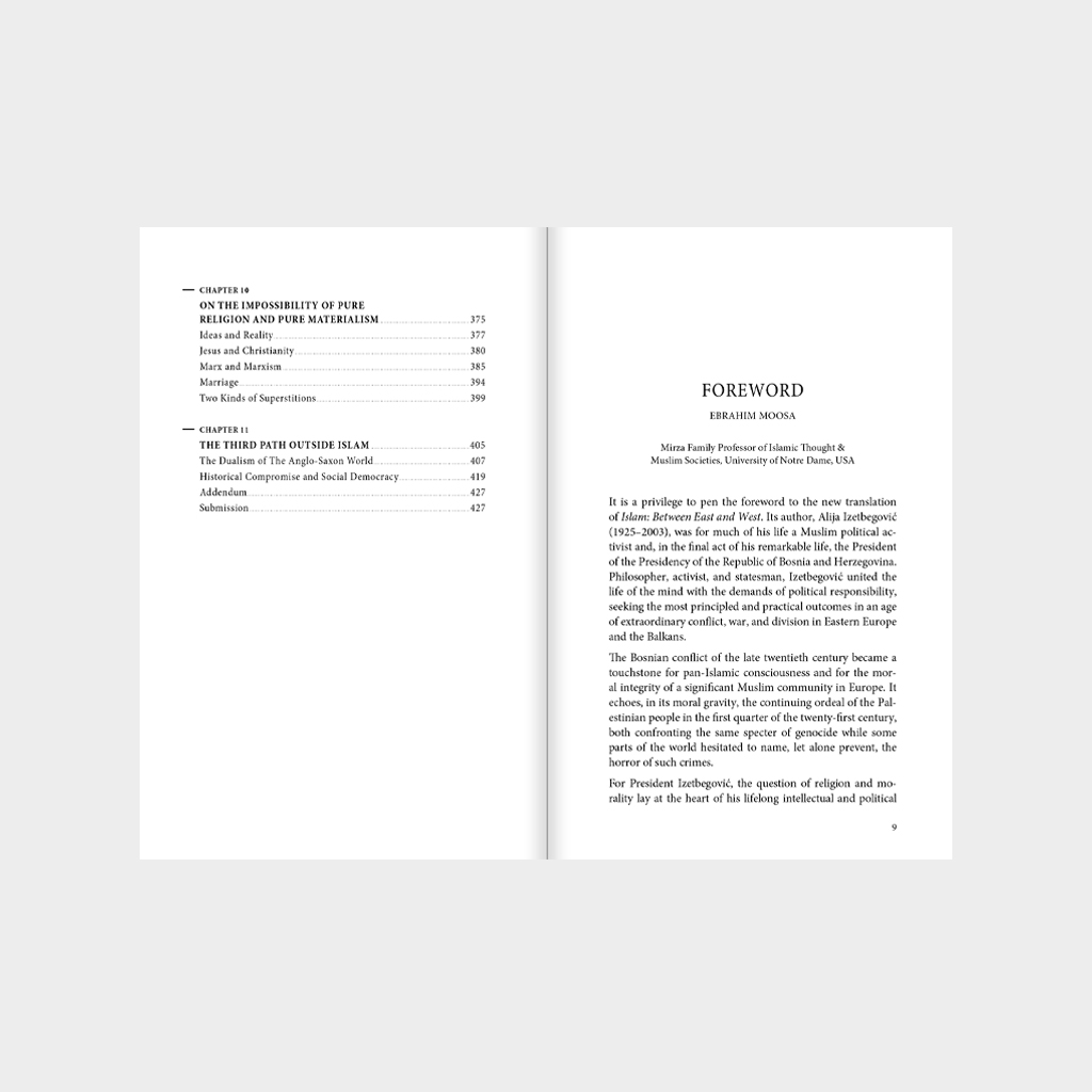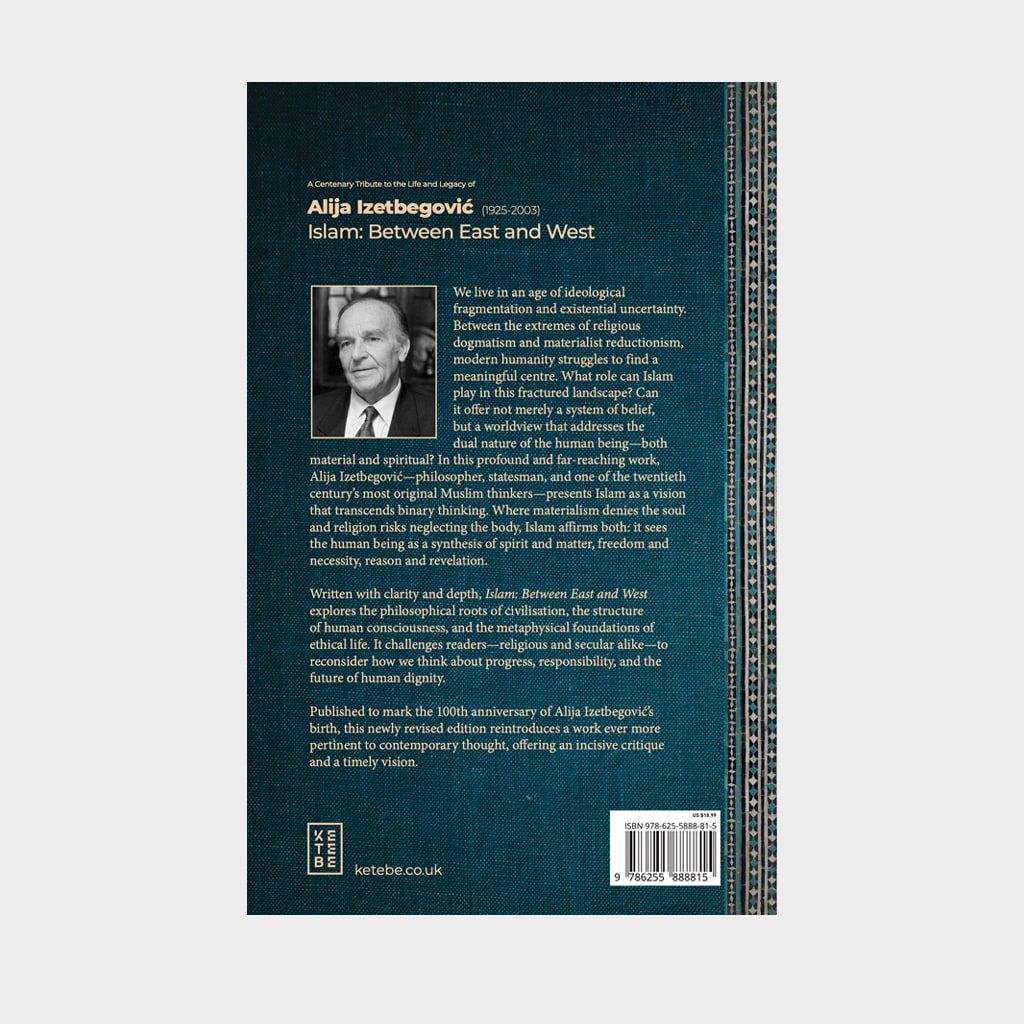 We live in an age of ideological fragmentation and existential uncertainty. Between the extremes of religious dogmatism and materialist reductionism, modern humanity struggles to find a meaningful centre. What role can Islam play in this fractured landscape? Can it offer not merely a system of belief, but a worldview that addresses the dual nature of the human being—both material and spiritual? In this profound and far-reaching work, Alija Izetbegović—philosopher, statesman, and one of the twentieth century’s most original Muslim thinkers—presents Islam as a vision that transcends binary thinking. Where materialism denies the soul and religion risks neglecting the body, Islam affirms both: it sees the human being as a synthesis of spirit and matter, freedom and necessity, reason and revelation. Written with clarity and depth, Islam: Between East and West explores the philosophical roots of civilisation, the structure of human consciousness, and the metaphysical foundations of ethical life. It challenges readers—religious and secular alike—to reconsider how we think about progress, responsibility, and the future of human dignity. Published to mark the 100th anniversary of Alija Izetbegović’s birth, this newly revised edition reintroduces a work ever more pertinent to contemporary thought, offering an incisive critique and a timely vision.