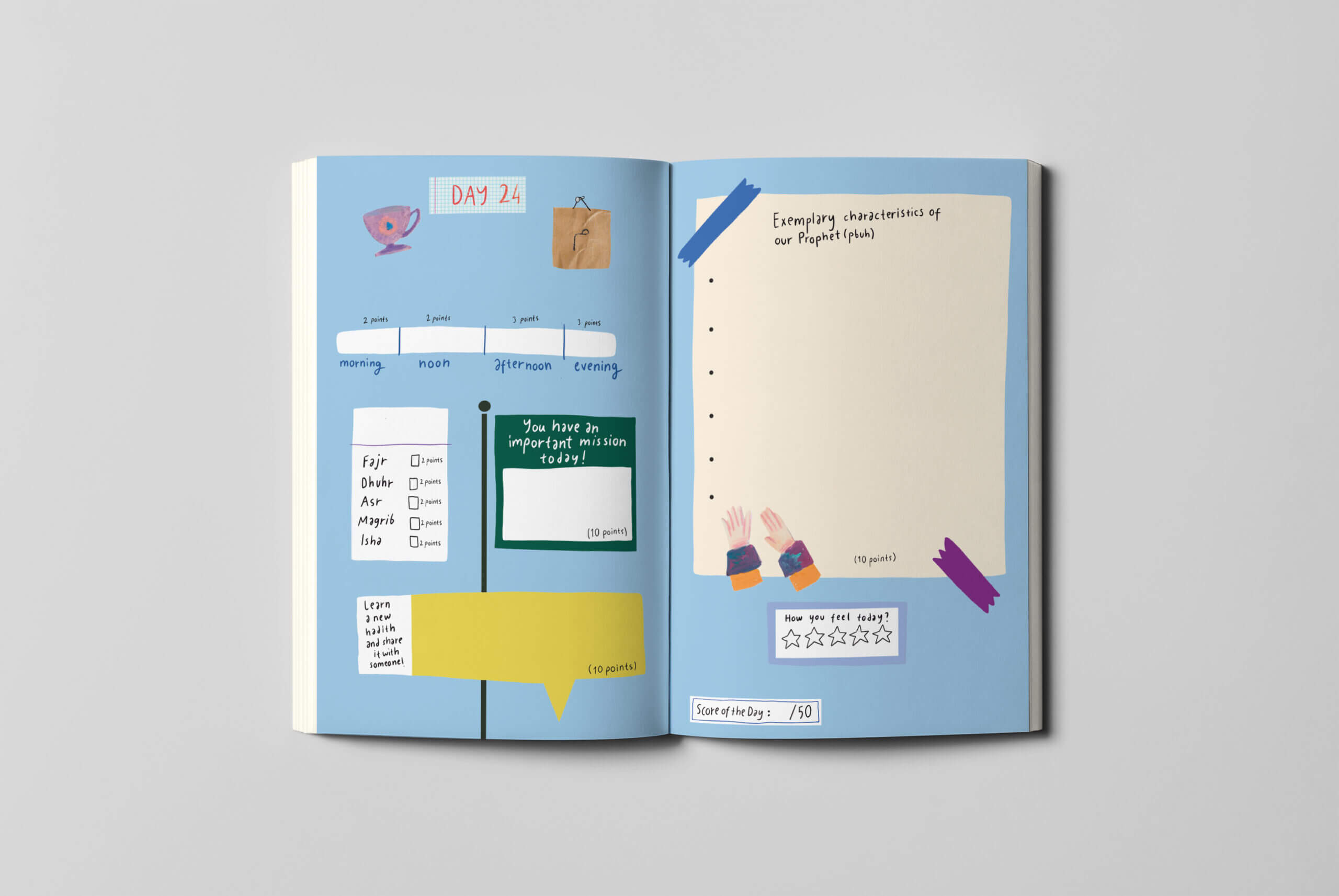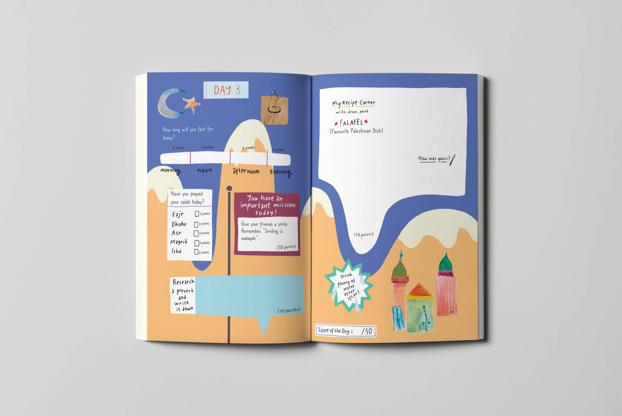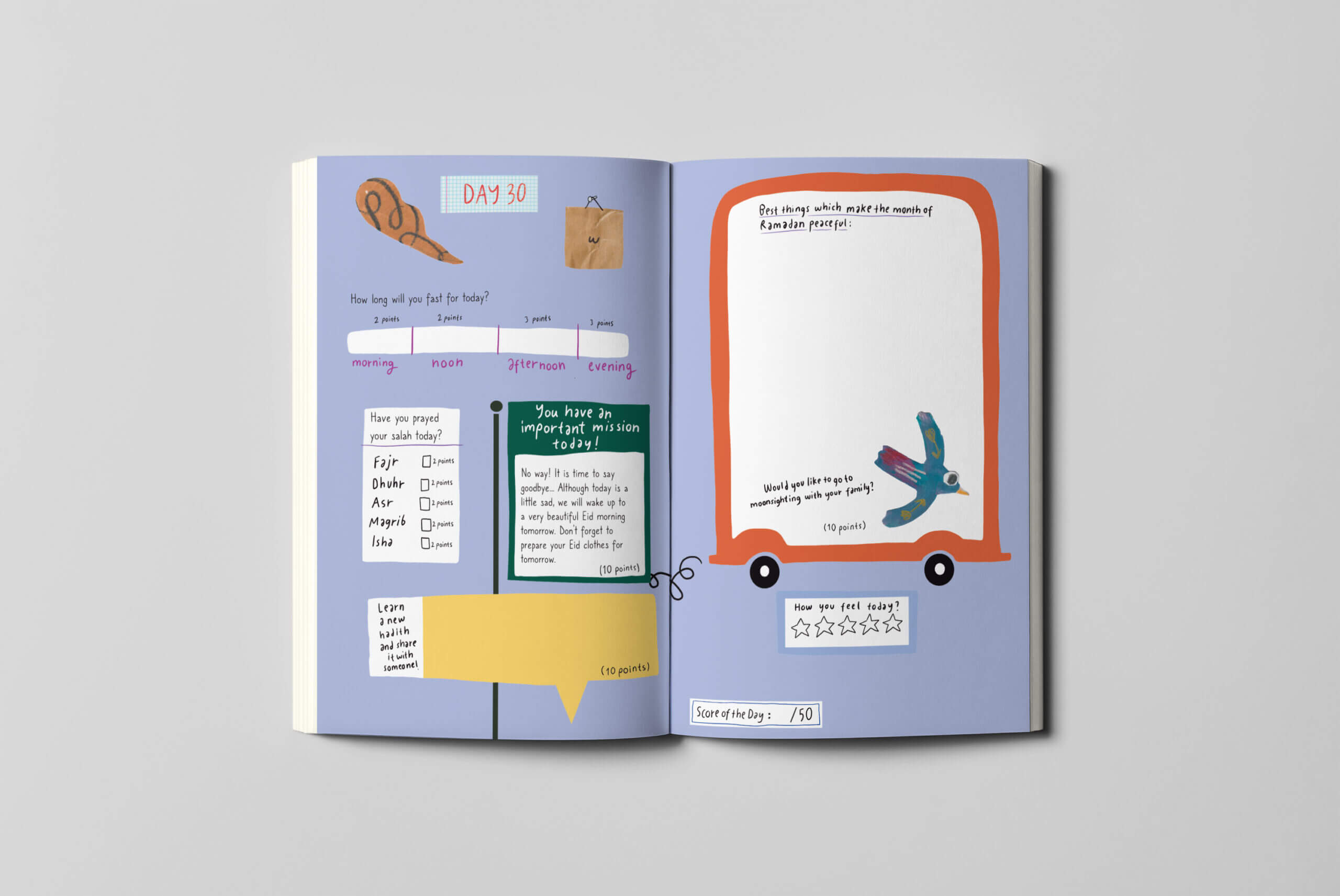 Colorful duties are waiting for you on every page. One day you will meet a new recipe, another day you will write your dreams! Prayers and fasting will continue to bring you points! Are you ready for the most enjoyable way to learn new things? P.S. Colorful stickers await you inside the diary.